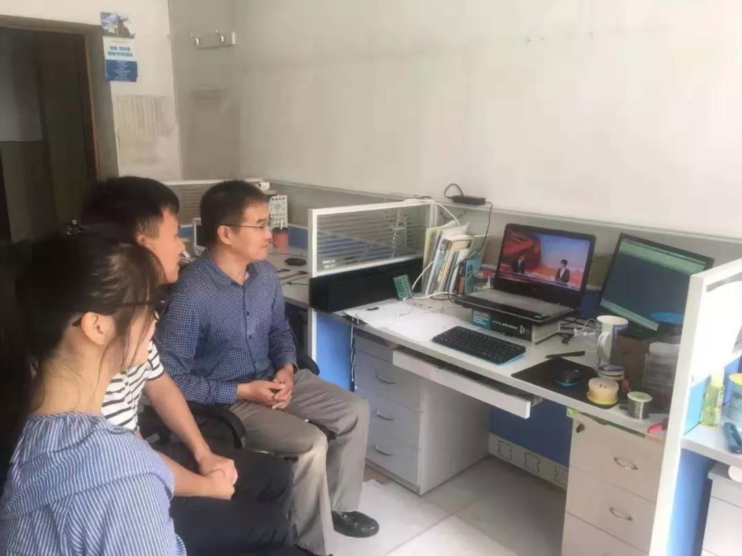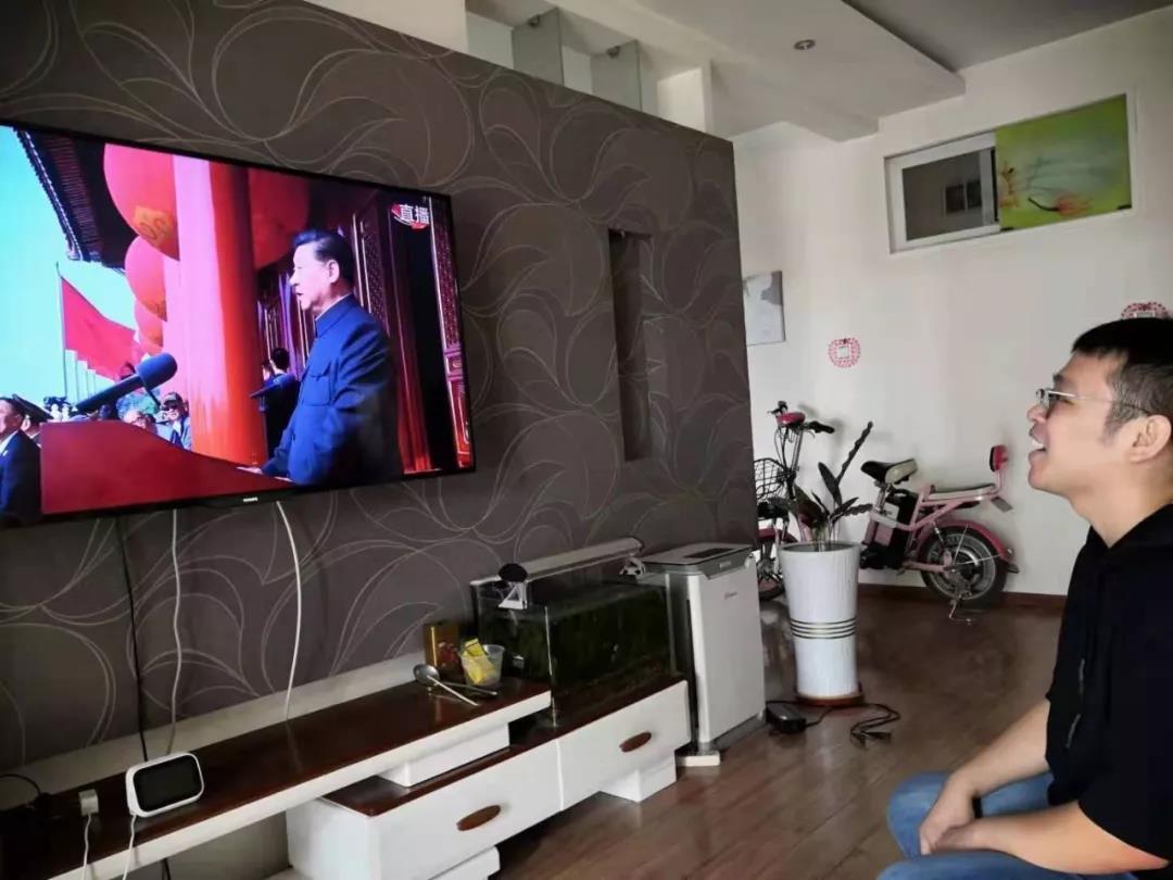 仪式后学院党委组织广大师生以多种形式观看祖国70周年庆典,院党委理论学习中心组带领学生党员代表在北辰机械楼315会议室观看大会盛况。