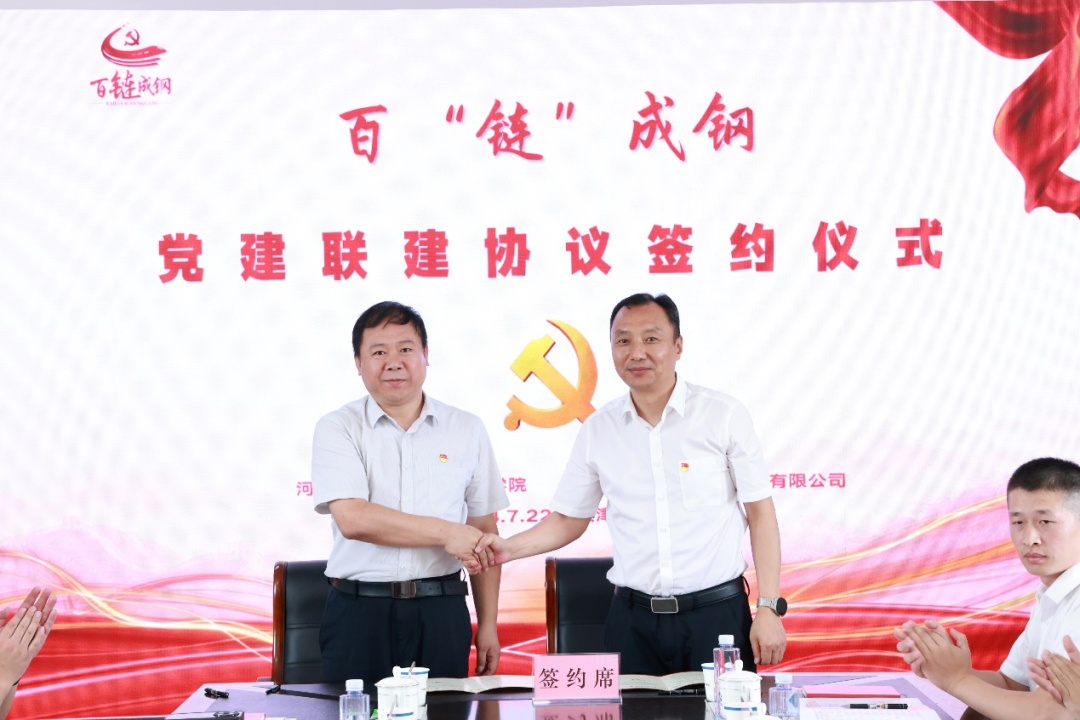 为推动党建联建走深走实,不断拓宽党建合作领域,全面构筑校企合作新生态,7月22日上午,机械工程学院与中铁四局集团物资工贸有限公司联合开展党建联建活动。公司总经理、党委副书记宋涛、副总经理周勇、天津物资分公司经理周尧、党群工作部部长左永涛、办公室主任孙健,机械工程学院党委书记杨占力、副书记兼副院长王素丹、副院长王刚、车辆系副主任刘海、办公室主任王云胜、学工办主任兼团委书记李继强及双方支部党员参加了活动。活动由天津分公司党支部书记、工会主席张学胜主持。