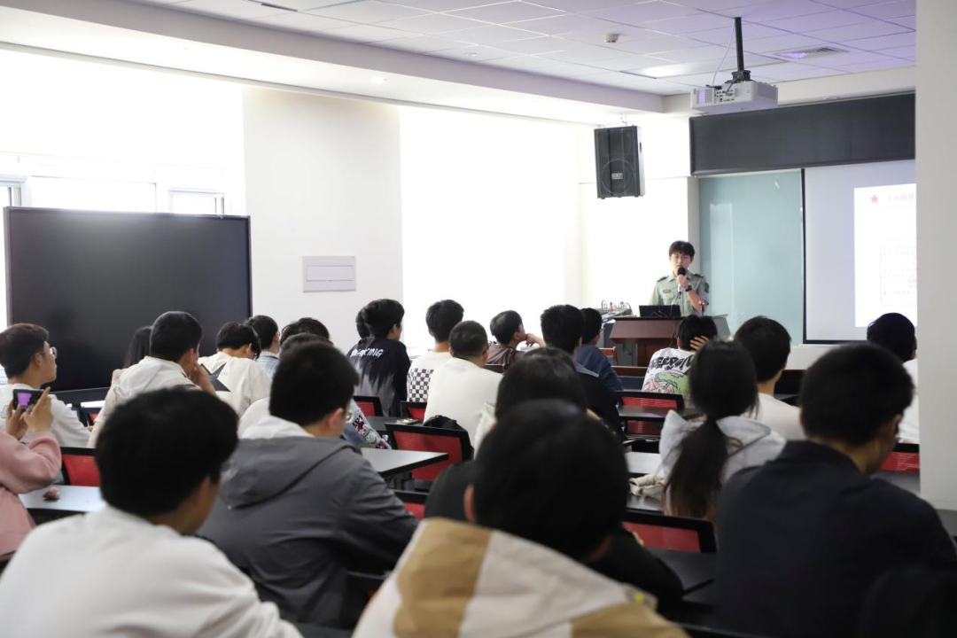 为做好2024年秋季大学生应征入伍宣传动员工作,激发大学生参军入伍热情,鼓励和引导在校大学生投身国防事业,机械工程学院于4月12日邀请了优秀退伍大学生代表刘一涵同学做宣讲。宣讲会于14:00在创新楼411举行,由2023级辅导员吴瞳老师主持,60余名学生代表参加活动。
