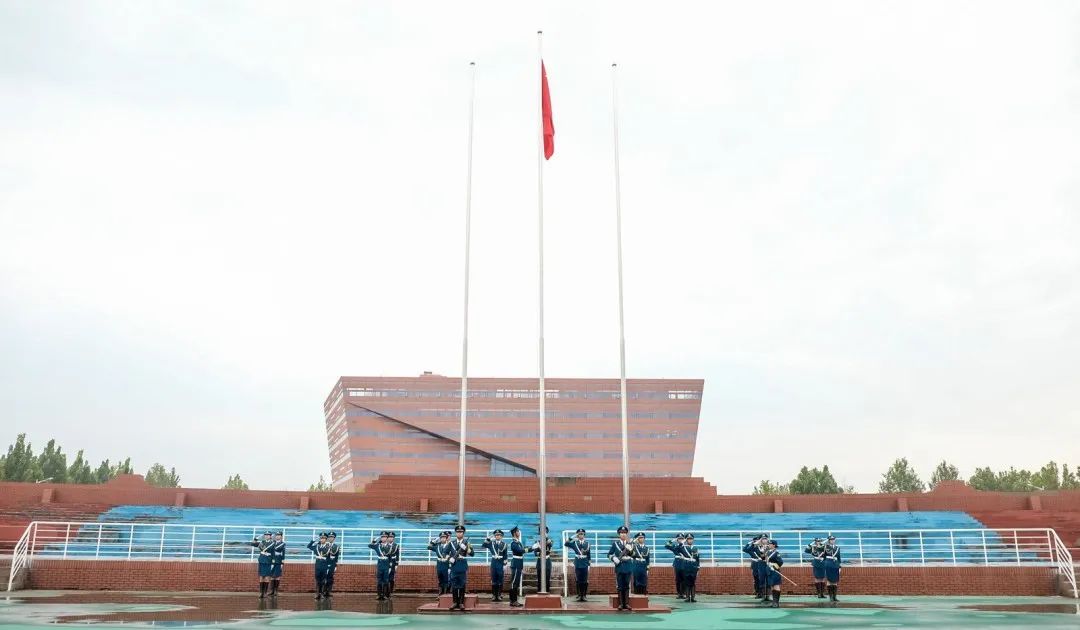 校阅伊始,伴随着雄壮的国歌,国旗在在场所有人的注目礼下冉冉升起。全体校领导、武警教官、所有师生在庄严肃穆的氛围中面向国旗,奏唱国歌。