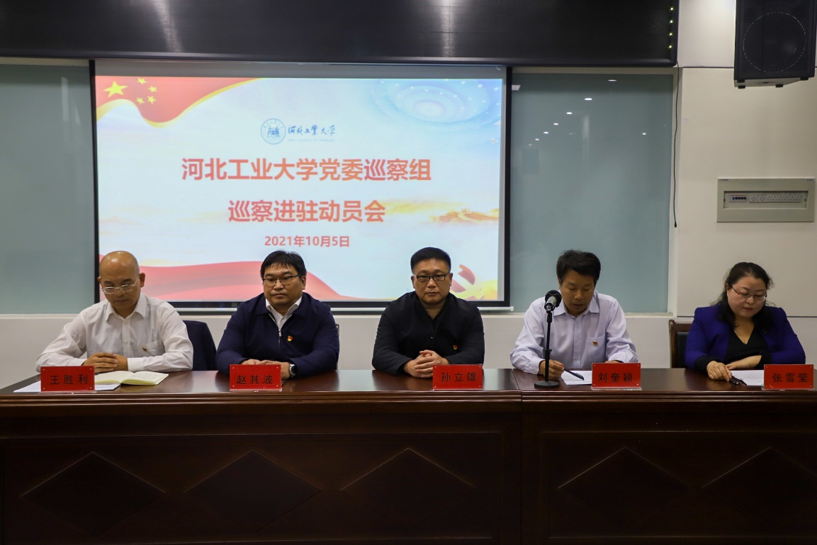 根据学校党委巡察工作统一部署,2021年10月5日下午,学校党委巡察组进驻机械工程学院,并召开巡察进驻动员会。学校党委巡察工作领导小组成员、巡察办公室主任、校党委组织部常务副部长孙立雄,学校党委巡察工作领导小组成员、巡察办公室专职副主任、校党委组织部正处级组织员赵其波,巡察组组长、城市学院党委书记刘奎颖,巡察组副组长、融媒体中心副主任张雪莹,巡察专员杨占昌、李波、王蕊、邵岩、姚爽、刘霞出席巡察进驻动员大会。