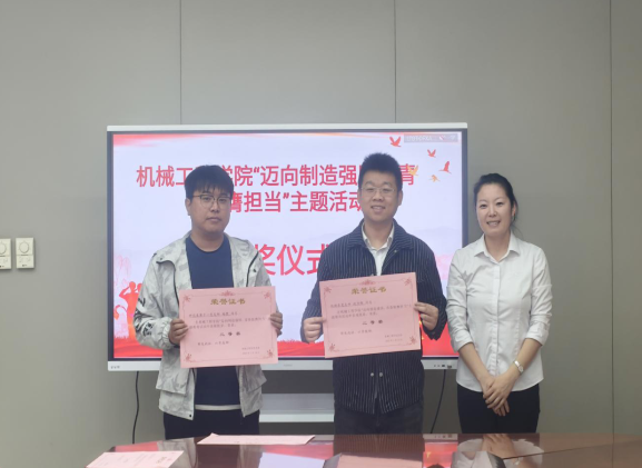 2025年3月24日,机械工程学院党委举办"迈向制造强国,青春挺膺担当"主题活动颁奖仪式,党委书记杨占力、党委副书记兼副院长王素丹、学院办公室主任王云胜以及各党支部党员代表参加活动。