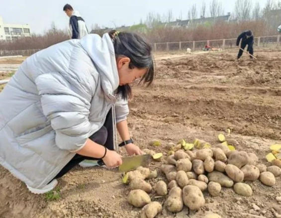 3月24日-27日,同学们开展马铃薯种植实践,在老师讲授与指导下完成了切块、播种、覆土等工序,在劳动中体验农耕文化。