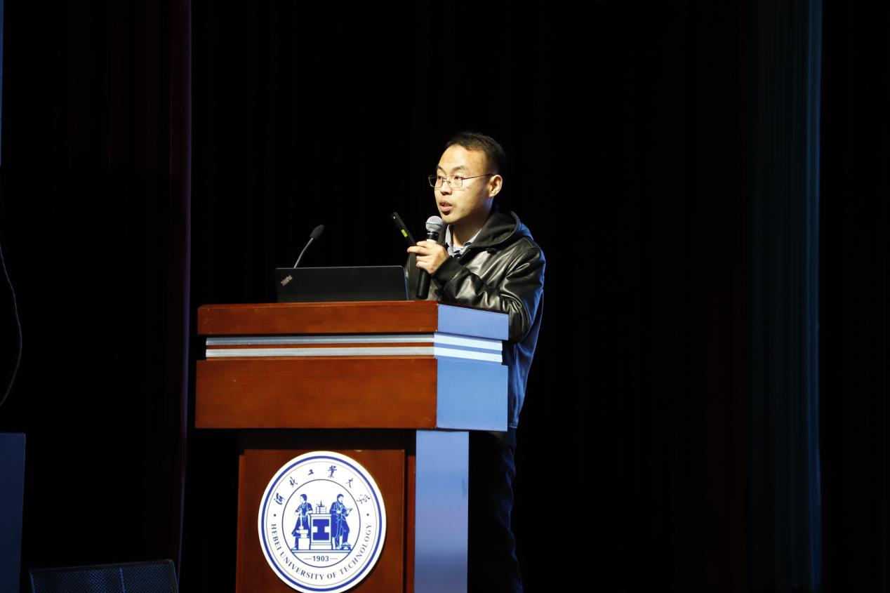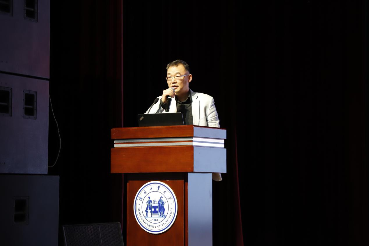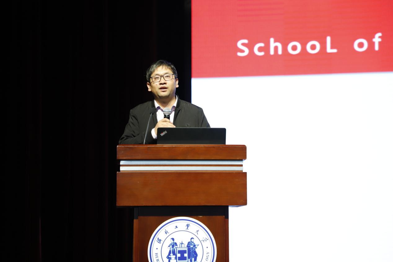 机械工程学院副院长张小俊对于河北工业大学以及机械工程学院的悠久历史做了概述;同时着重介绍了机械工程学院规模、发展现状以及学院各个专业主要研究方向和研究成果;并在最后对于机械学子们今后的大学发展表达由衷的祝福。