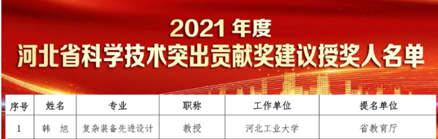 2022年2月21日,河北省科学技术奖励委员会办公室发布了关于2021年度河北省自然科学奖、技术发明奖、科学技术进步奖总评结果,其中河北工业大学校长韩旭教授获河北科学技术突出贡献奖。威廉官网中国官方网站张明路教授主持项目“核电堆芯智能运维机器人装备关键技术于应用”获得河北省科技进步一等奖。