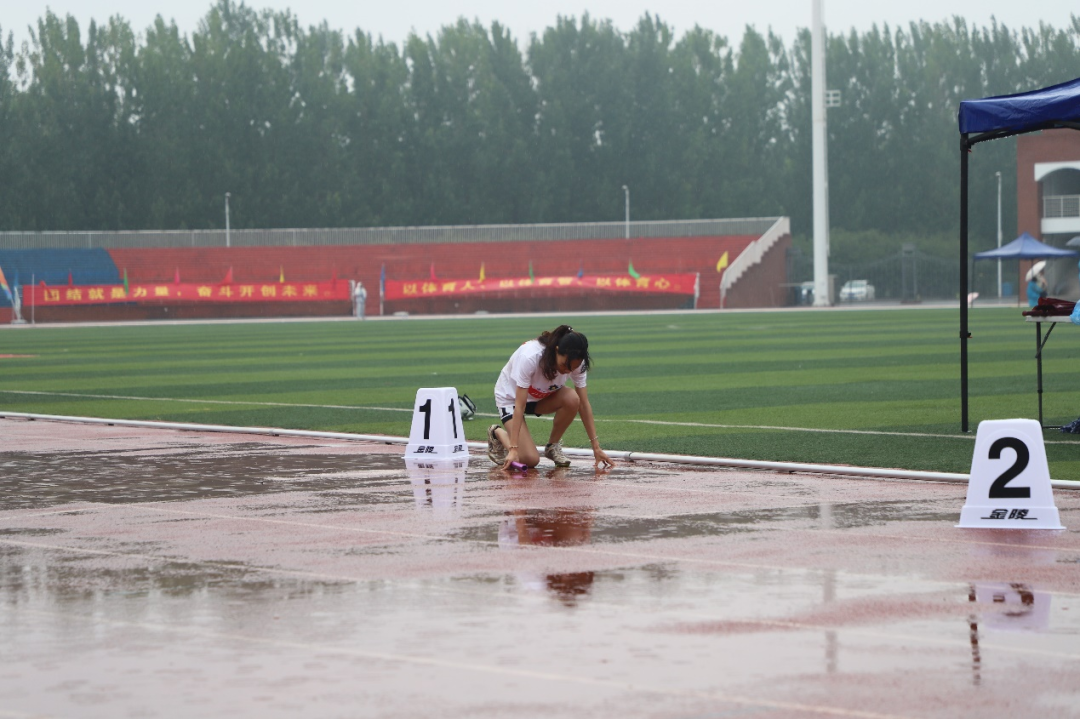 赛场奋力拼搏,雨中竞技尽显不屈精神,汗水、雨水交织,追赶、投掷、起跳中奋勇争先。