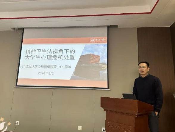 为提升教师心理健康教育指导水平,11月22日上午9:00机械工程学院于机械楼313会议室,邀请校心理健康教育中心主任吴涛做《精神卫生法视角下的大学生心理危机处置》主题讲座,学院党委副书记兼副院长王素丹、副处级辅导员段明洋、专兼职辅导员以及各导学团队研究生导师代表参加培训。