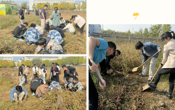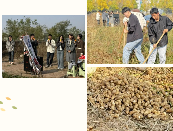 伴随着欢快的音乐节奏,老师们引导同学们有序地进行分工,起花生、落花生、掰玉米、割黄豆,现场师生边聊边干,其乐融融,满是丰收的喜悦。