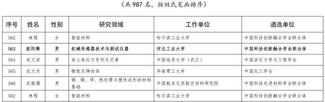 喜报!威廉官网中国官方网站欧阳衡副教授入选第十届中国科协青年人才托举工程