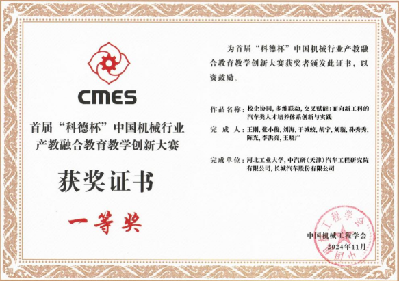 近日,首届“科德杯”中国机械行业产教融合教育教学创新大赛结果发布,我校与长城汽车股份有限公司、中国汽车技术研究中心联合申报的“校企协同,多维联动,交叉赋能:面向新工科的汽车类人才培养体系创新与实践”项目获全国一等奖。