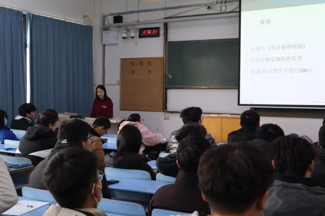 资助工作负责人胡新婷老师向同学们详细介绍了感恩实践活动的流程、考核机制、注意事项以及学校奖、贷、助、补、减等保障型资助体系。