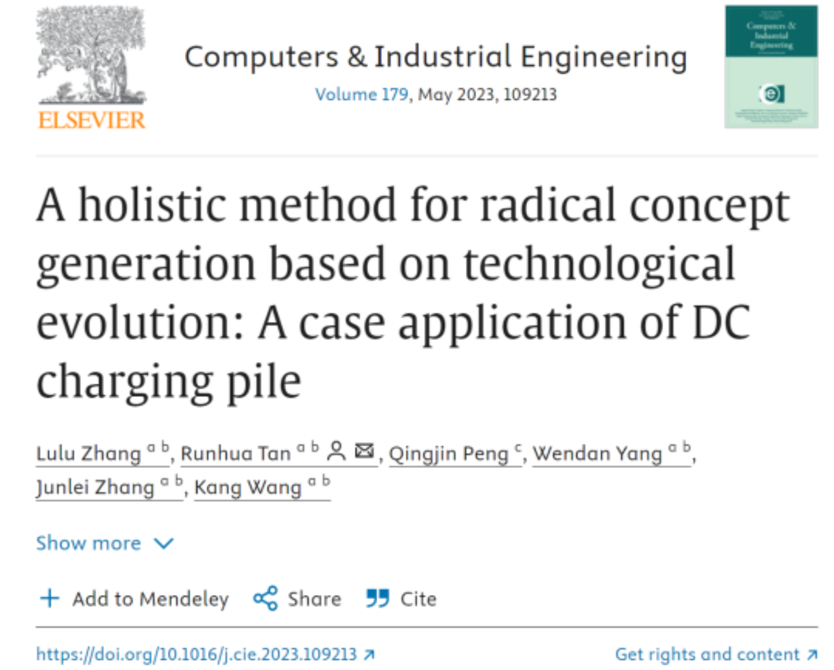 以上研究成果以“A holistic method for radical concept generation based on technological evolution: A case application of DC charging pile”为题,发表在《Computers & Industrial Engineering》上。威廉官网中国官方网站、国家技术创新方法与实施工具工程技术研究中心博士张路路为文章第一作者,河北工业大学檀润华教授为论文的通讯作者。该研究工作得到了国家自然科学基金和中央引导地方科技发展专项的支持。