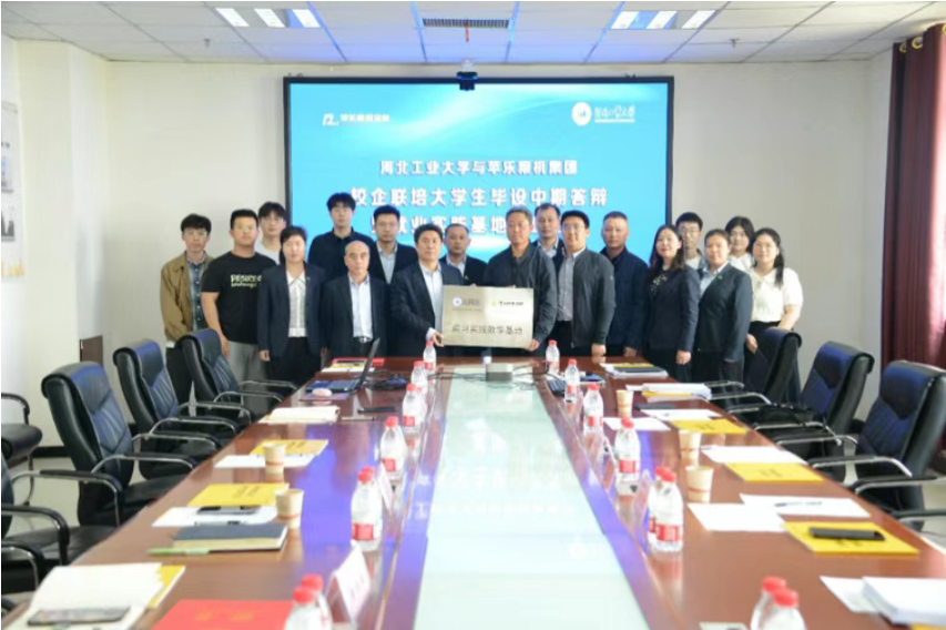 产教融合、校企合作是推动人才培养模式创新的重要引擎。进日学院实习实践基地授牌仪式暨校企联合毕业设计中期答辩在苹乐粮机集团举行。参加此次活动的有河北省工程技术创新研究院副院长张建辉、机械工程学院机械系主任张忠海、副主任王耀,苹乐粮机集团总经理吴军永,人力资源部长李晓玲,产品研发部长高鹏,人力资源部经理王世娟,企业导师杨冰峰、兰文斌、张玉、穆岳林及在苹乐粮机集团进行在岗实习的所有同学。此次活动旨在进一步推动教育、人才、产业、创新的有机衔接与深度融合,提升学生“真题真做”与学校服务地方产业发展的能力。