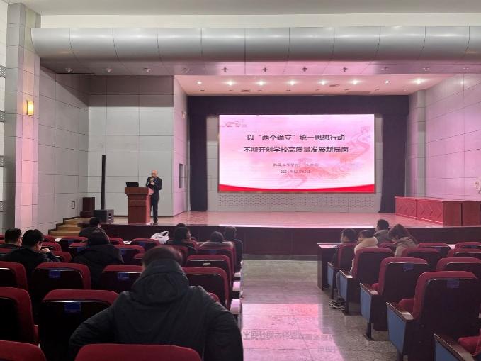 学院党委高度重视党的十九届六中全会精神学习宣讲活动,12月17日,学院党委书记王胜利在行政楼报告厅,给学院教师代表作题为《以“两个确立”统一思想行动,不断开创学校高质量发展新局面》的宣讲报告。