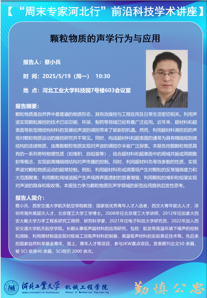 “周末专家河北行”前沿科技学术讲座-颗粒物质的声学行为与应用